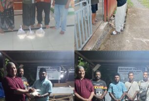 Suasana akrab terlihat saat prosesi penyerahan yang berlangsung pada Kamis malam di kawasan Kali Tubi, Bintuni. Momen ini menjadi bukti nyata kolaborasi yang baik antara perusahaan dan insan pers.